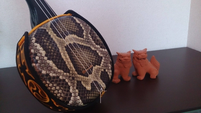 三線は、ヘビの皮(ニシキヘビ)を張った、独特な楽器です。このヘビ皮が、独特の柔らかく、しかしどこか芯のある音色を生み出します。